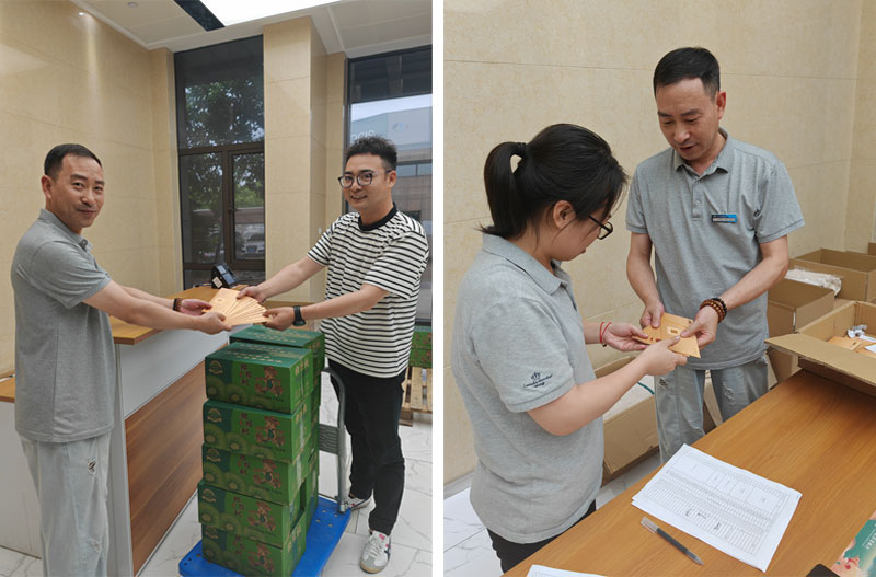 中秋未到,福利先到。在现场我们可以看到公司精心准备了新鲜美味的陕西猕猴桃和应季大闸蟹券,作为中秋福利送到大家手中。